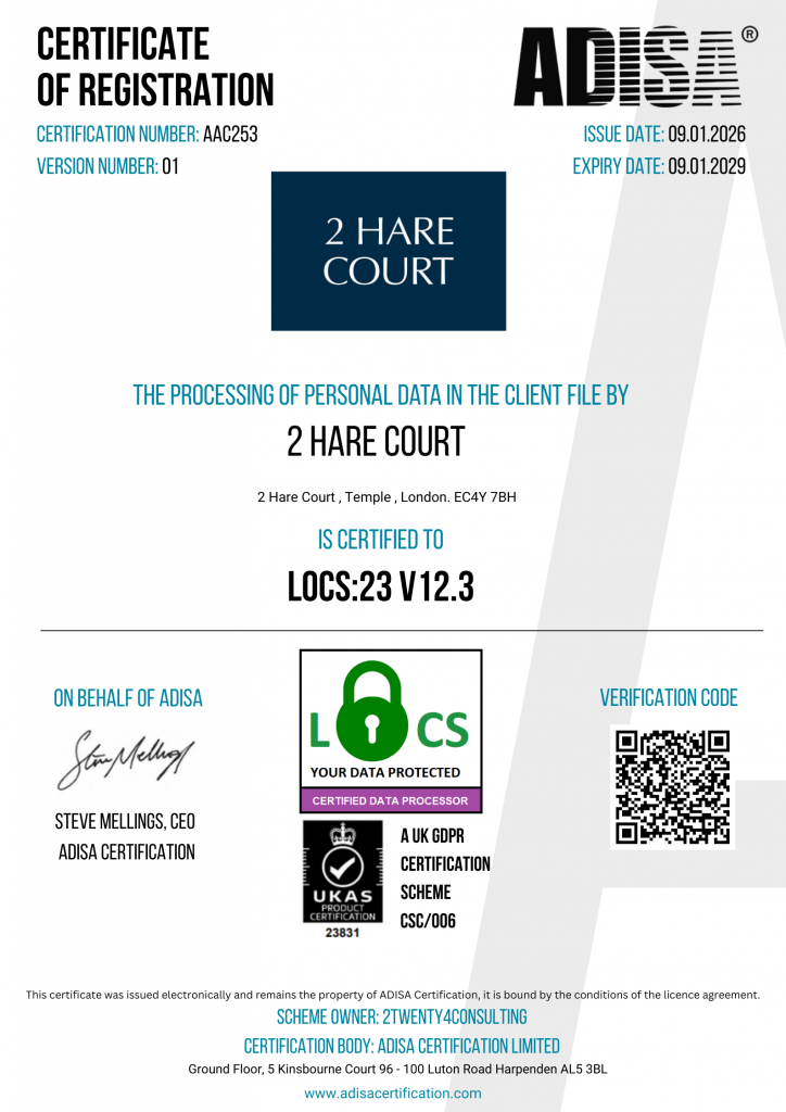Chambers of Jonathan Laidlaw KC – 2 Hare Court