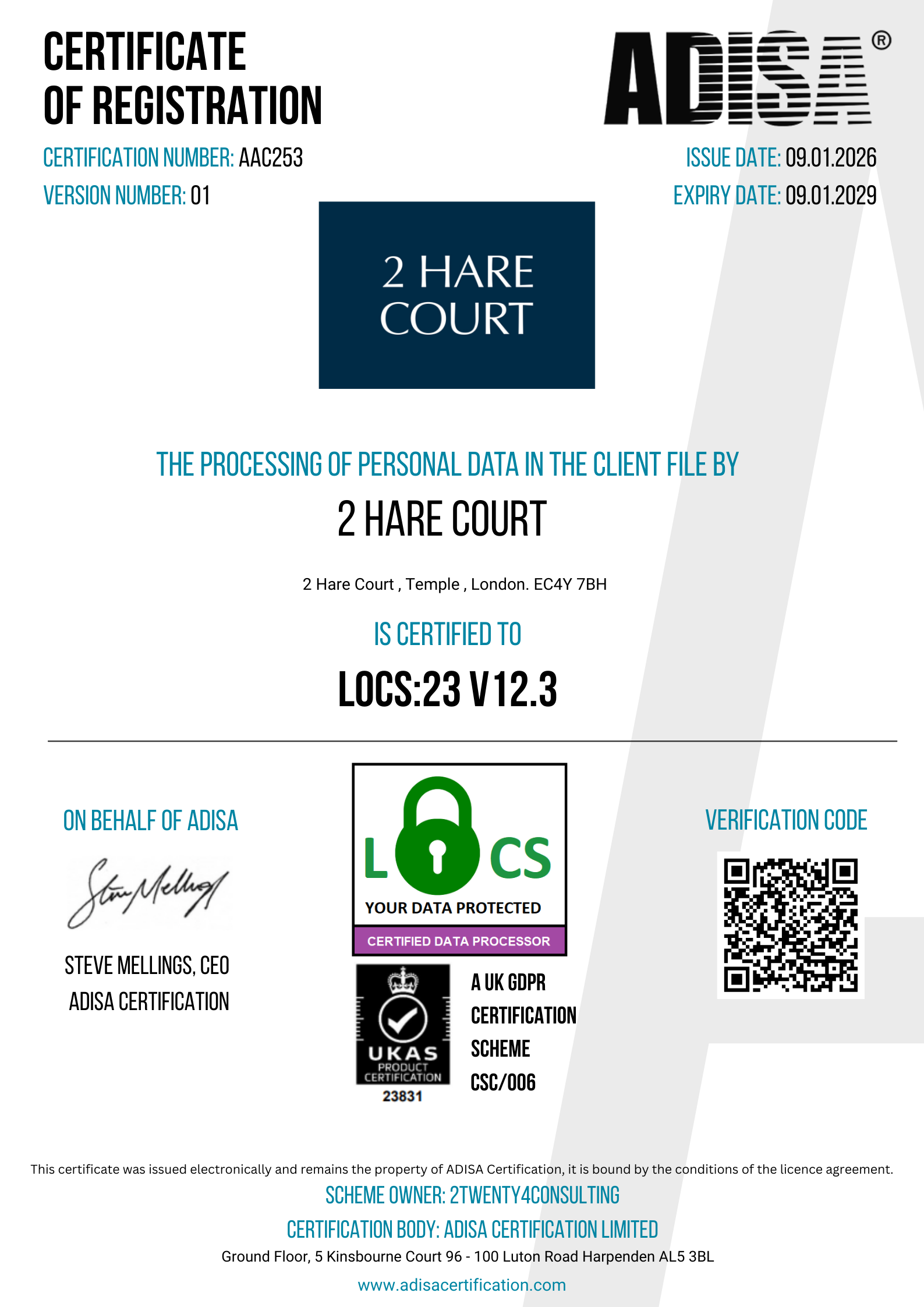 UK GDPR Certification Scheme Legal Services Operational Privacy Certification Scheme ICO-CSC/006